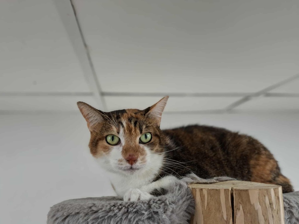 Sauterelle est une jeune louloute qui a été trouvée en divagation en compagnie de ses sœurs. La vie en extérieur l'a profondément marquée puisque la belle reste sur la réserve vis-à-vis de l'humain. Il lui faudra donc du temps et de la patience pour que la louloute se révèle. La présence d'un autre compagnon bien dans ses pattes pourraient éventuellement l'aider à se reconstruire.