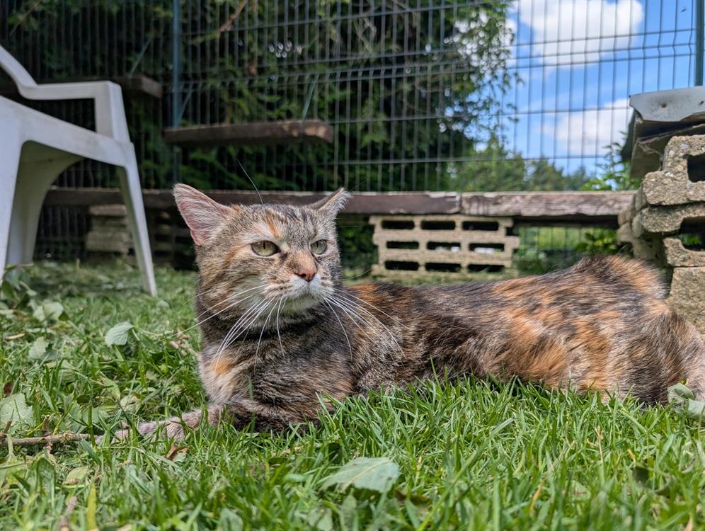 Grisette est arrivée chez nous suite au décès de son humain. Tout d'abord traumatisée, elle restait cachée et ne se laissait pas toucher. Avec beaucoup de temps et de patience, nous arrivons enfin à lui faire des câlins qu'elle apprécie beaucoup. Elle aime ses petites promenades dans le jardin, elle aura donc besoin d'un accès extérieur pour profiter du soleil (quand il veut bien se montrer!). Grisette est depuis peu, sous alimentation rénale, et celà lui convient très bien. C'est une petite mamie très attachante qui a besoin d'un foyer calme pour sa retraite.