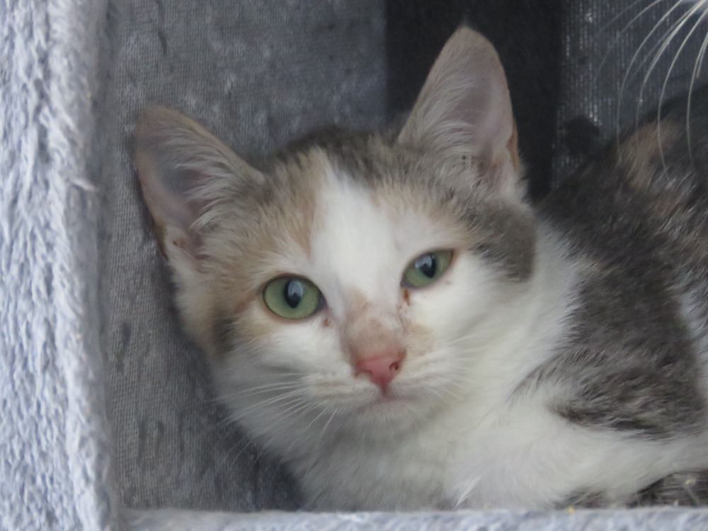 Chick est un adorable chaton. Il est un peu timide au premier abord mais une fois en confiance, il se montre affectueux. Il est habitué à vivre à l'intérieur avec d'autres chats.