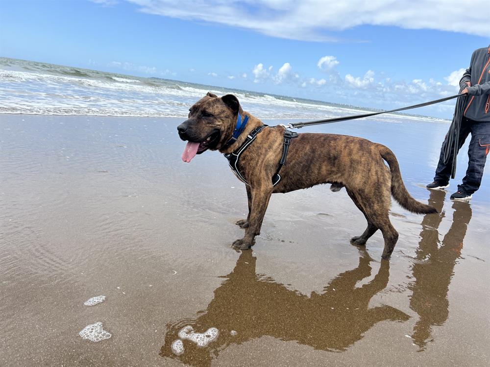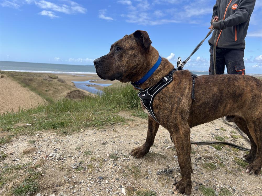 Si impressionnant derrière les barreaux de son box… et pourtant, quelle bouille d’amour ! Notre bel Eli souffre énormément de l’enfermement : la vie au refuge devient de plus en plus difficile pour lui. Grand molosse au cœur tendre, il a besoin de longues balades quotidiennes dans des espaces arborés pour canaliser son énergie et profiter pleinement de son dynamisme. Il semble ne jamais avoir connu la vie en maison : ses futurs adoptants devront donc l’accompagner avec patience et bienveillance pour lui faire découvrir le confort et la routine d’une vie de famille. Ses ententes avec les congénères seront à évaluer selon les profils et les tempéraments. Mais une chose est sûre : Eli est un gros nounours à rencontrer absolument ! Si vous souhaitez lui offrir un cadre rassurant et une famille aimante, pensez à remplir le certificat d’engagement et de connaissance avant votre visite. Disponible sur notre site internet ou via notre formulaire de contact par mail.