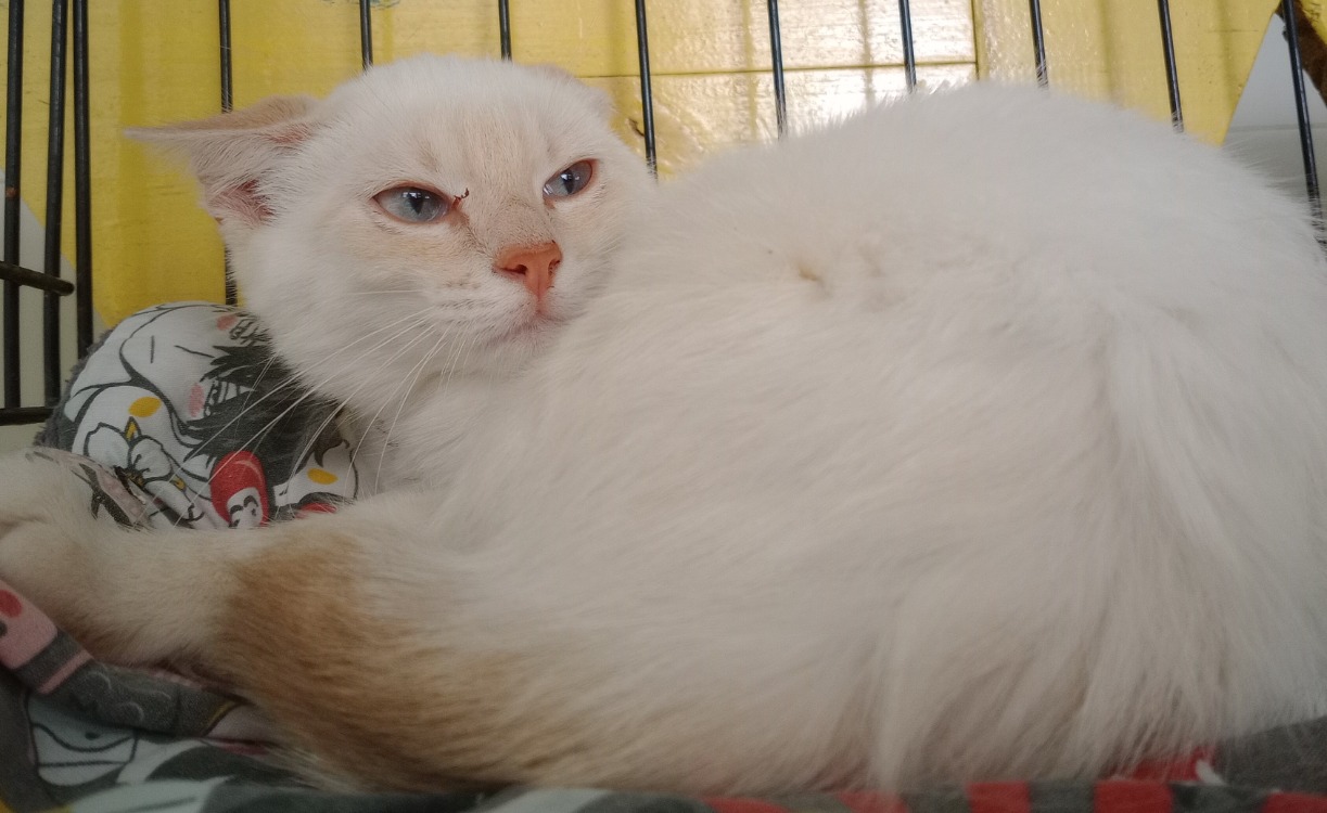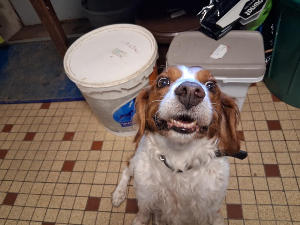 Chien gentil et habitué au canapé. Copain avec un chat.