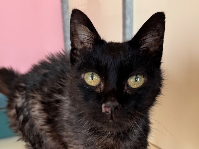 Elle a toujours vécu avec les deux soeur Lucky et Lassie. Elle est très craintive et pour le moment nous fuit et notre présence la stressé beaucoup.