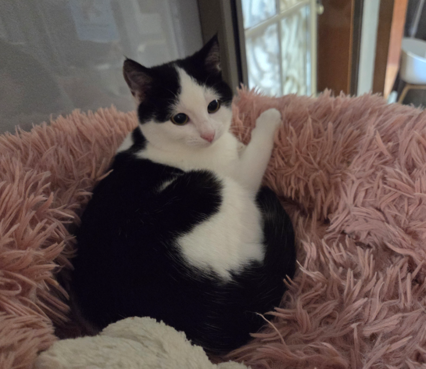 Athénaïs, chatonne de 7 mois, a été prise en charge avec sa fratrie suite à la sollicitation d’une commune. Issue d’un groupe très farouche, elle a beaucoup progressé depuis son arrivée : malgré quelques réserves elle adore les caresses et se frotte avec plaisir. Indépendante, Athénaïs préfère d’ailleurs vivre sa petite vie de son côté en général.