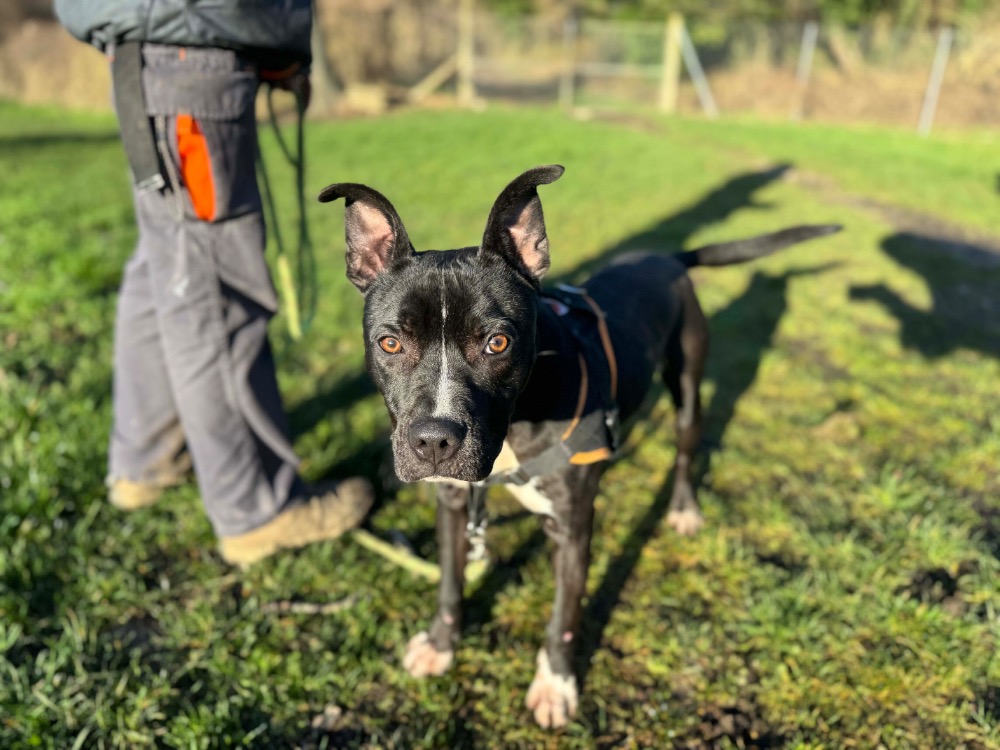 Nous pouvons vous dire que c'est un joli jeune chien, foufou et sensible qui aura besoin d'une famille calme, qui saura l'accompagner dans la gestion de ses émotions.