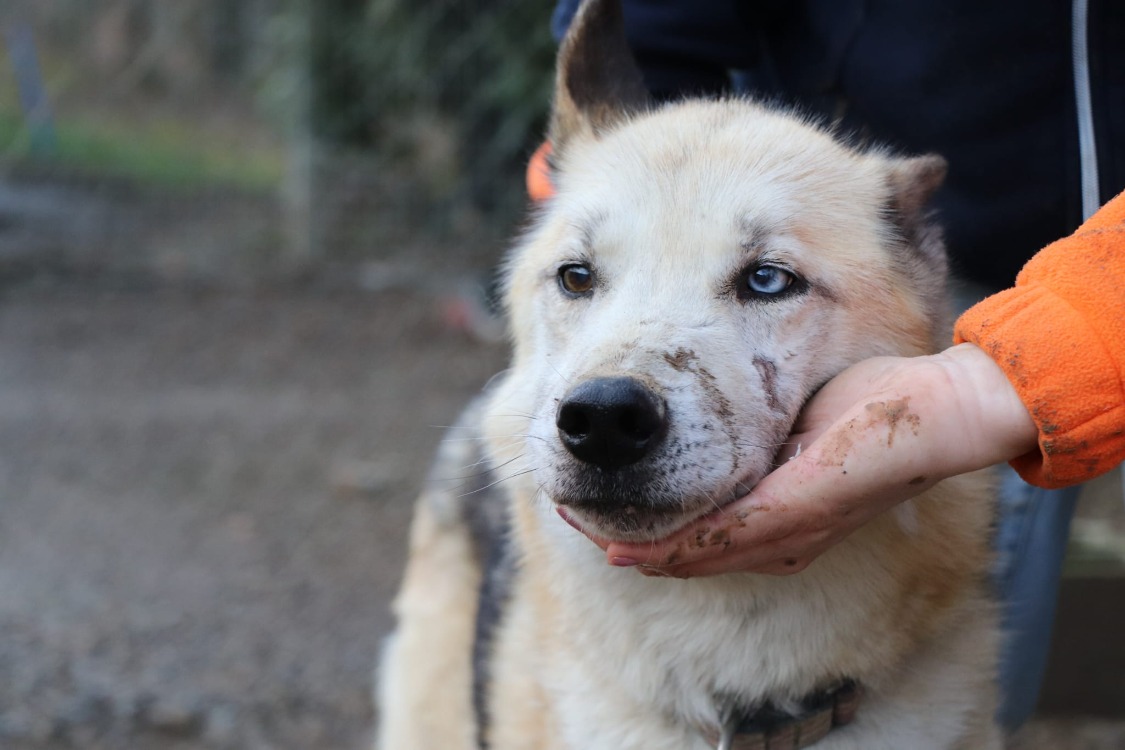 Huggy est un chien adorable avec l'humain. Prochain de l'homme. Il aspire à vivre ses vieux jours dans un foyer au chaud.