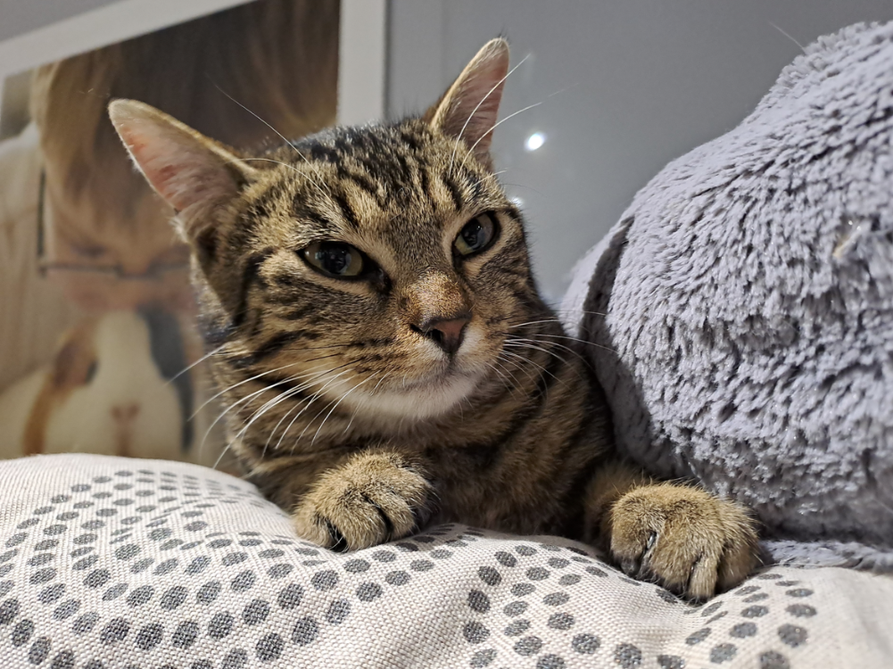 Elle aime sa tranquillité mais également les câlins, elle est adorable.
