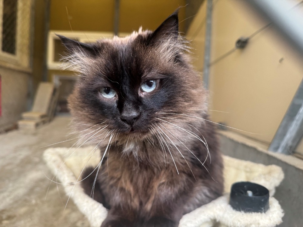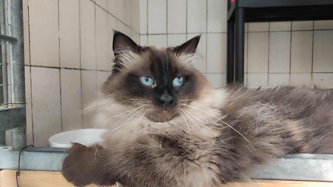 Luna nous vient de la fourrière. C’est une chatte sociable, affectueuse et très gourmande qui a tout de même son petit caractère. Nous éviterons donc la présence de jeunes enfants.