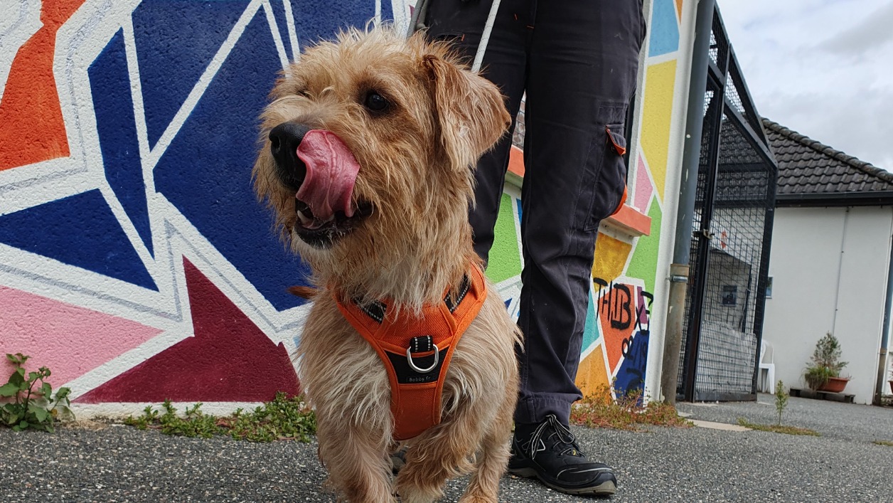 C'est une jeune chienne énergique et proche de l'humain