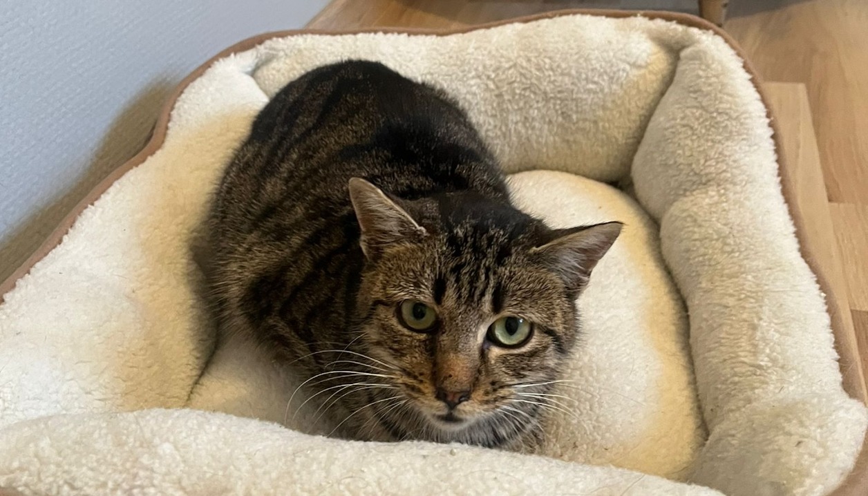 Perle a été abandonnée car son ancienne famille possédait un très grand nombre de chats.