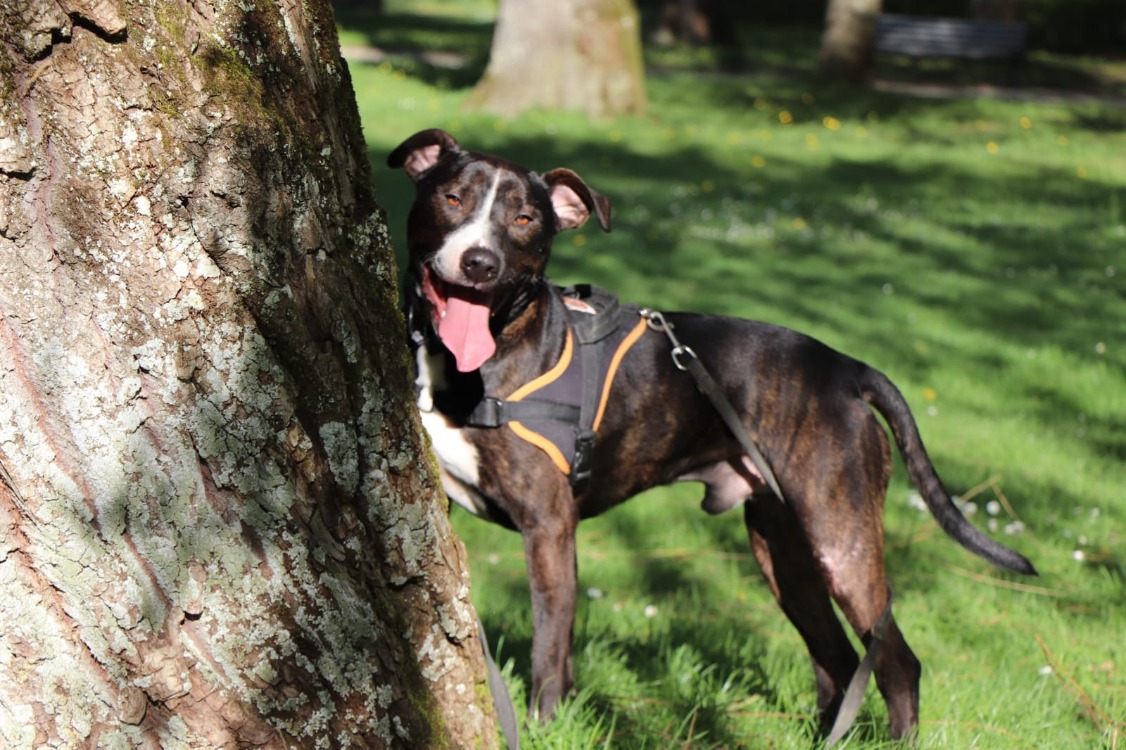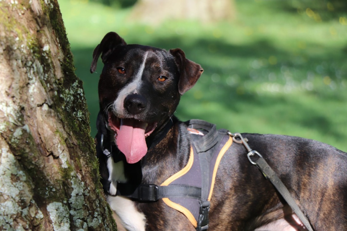 Fox est un adorable croisé dogue, sensible et rempli d’amour. Il peut se montrer réservé avec les inconnus, mais une fois en confiance, c’est une véritable guimauve qui adore les câlins et les moments de complicité. Il apprécie particulièrement les balades, qui lui permettent de se révéler pleinement et de montrer tout son caractère affectueux, bien mieux que lorsqu’il est derrière son box.
