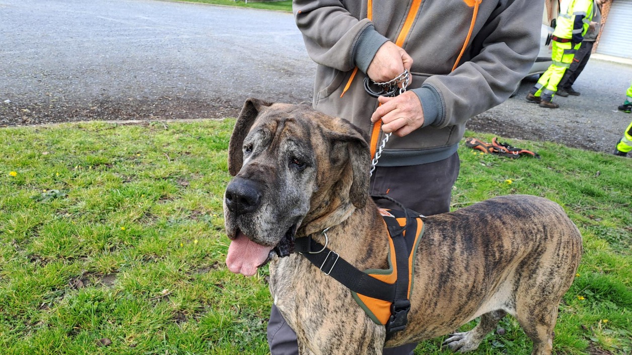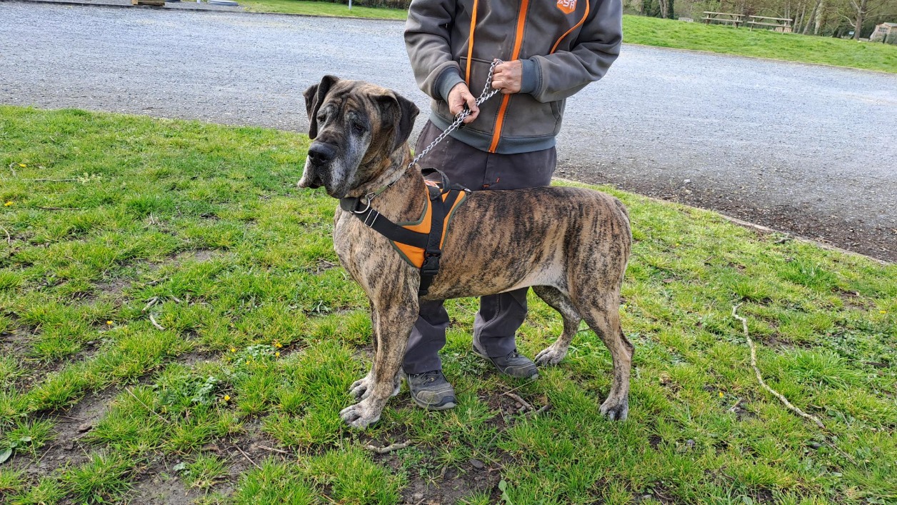 PAOLA se montre affectueuse, proche de l'humain et assez calme, un Dogue de cet âge est déjà un sénior... Elle se contentera de petites balades pour sa "retraite", afin de continuer à profiter de la vie et être bien dans ses pattes. Venez donc la rencontrer !