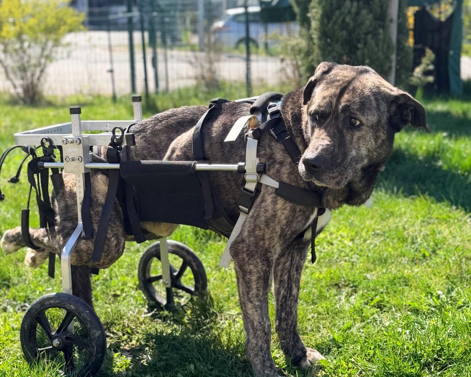 Il est paralysé des postérieurs à cause d'une tumeur dans la colonne vertébrale.