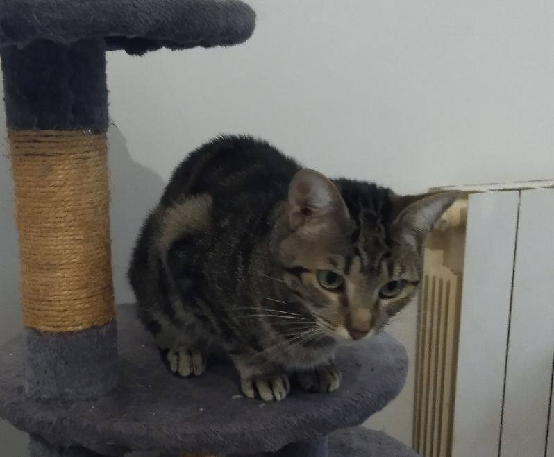 Mystère est un jeune chat de 18 mois, qui nous a été confié avec plusieurs autres chats, sa propriétaire n'ayant plus les moyens de les soigner correctement. Mystère a été testé positif au FIV et à la leucose. C'est un chat timide, qui a besoin d'un peu de temps pour se détendre. Il est habitué aux chats et aux chiens. Une fois en confiance, il apprécie les caresses. Compte tenu de ses maladies, il devra vivre en intérieur ou pourra avoir accès à un extérieur sécurisé.