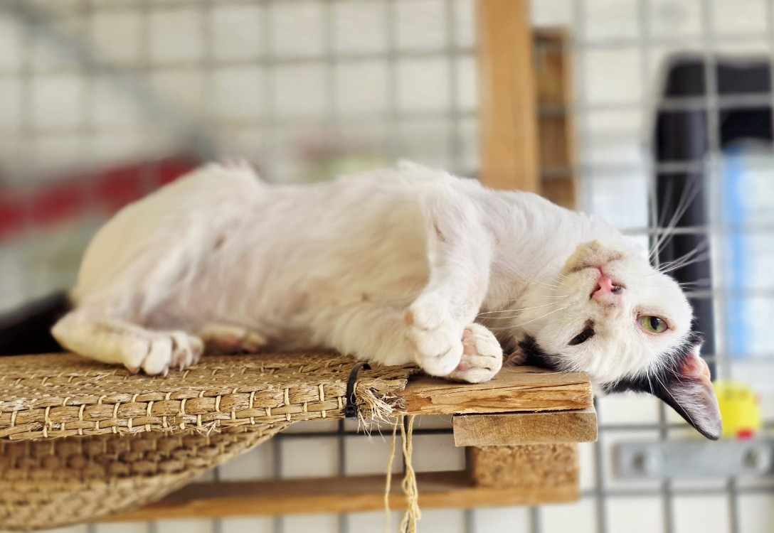 Oréo aura besoin d'espace pour s'épanouir pleinement et d'un foyer patient et à l'écoute de ses besoins. Il est très câlin, un vrai petit pot de colle qui adore grimper partout. Actuellement il a un traitement contre l'anxiété (environ 5 euros par mois) suite au stress lié à son abandon et au changement d'environnement.